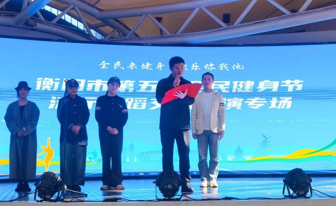 市流行舞蹈协会会长李晓钊致欢迎辞。她表示,流行舞蹈作为深受广大群众喜爱的健身方式,正以其独特的魅力吸引着越来越多市民的参与,成为衡阳全民健身运动中一道靓丽的风景线。